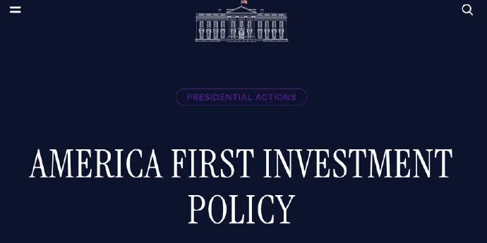 ▲2月21日,特朗普签署“美国优先投资政策”备忘录,下令限制中国对美关键领域的投资,并扩大美企对华投资限制。