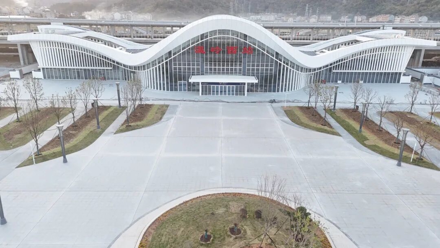 近日,由中铁建设集团承建的杭台高铁温岭至玉环段(温玉铁路)温岭西站外立面装修工程基本完工,整体造型首次亮相,客站建设全面转入内部装饰装修收尾阶段。